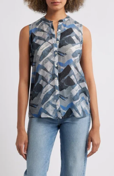 Print V-neck Tank In Blue Multi