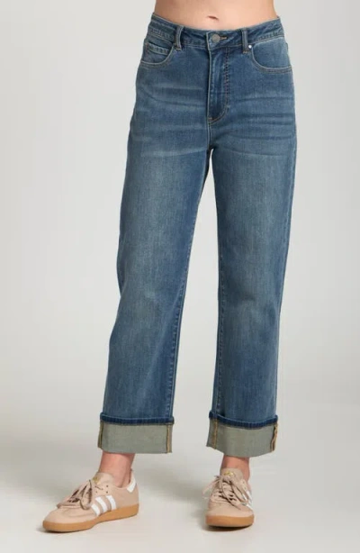 Cuffed Straight Leg Jeans In Blue