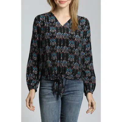 Print Tie Front Top In Black Multi