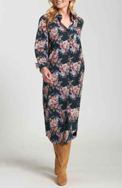 Floral Print Long Sleeve Shirtdress In Multi