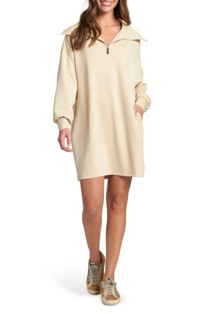 Half Zip Long Sleeve Sweatshirt Dress In Neutral
