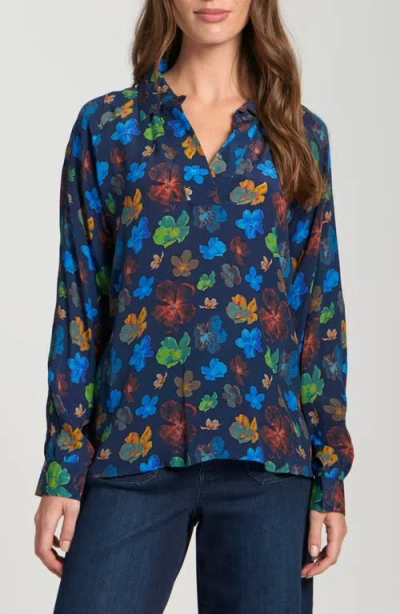Tie Neck Top In Blue/purple Multi