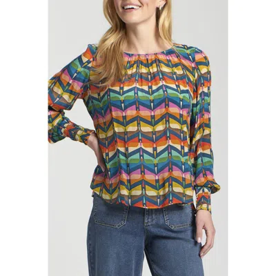 Printed Smocked Cuff Top In Multi
