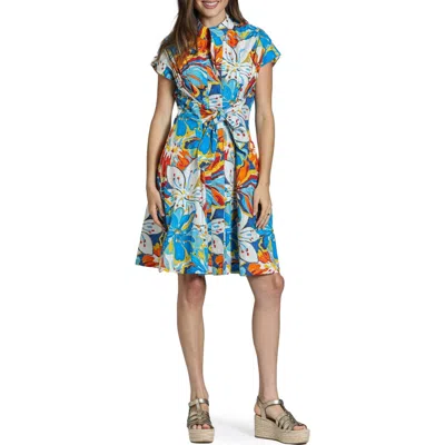Floral Tie Front Cotton Camp Shirt In Red Multi