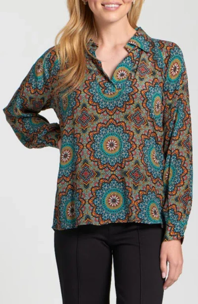 Abstract Print Roll Tab Sleeve Chiffon Button-up Shirt In Multi