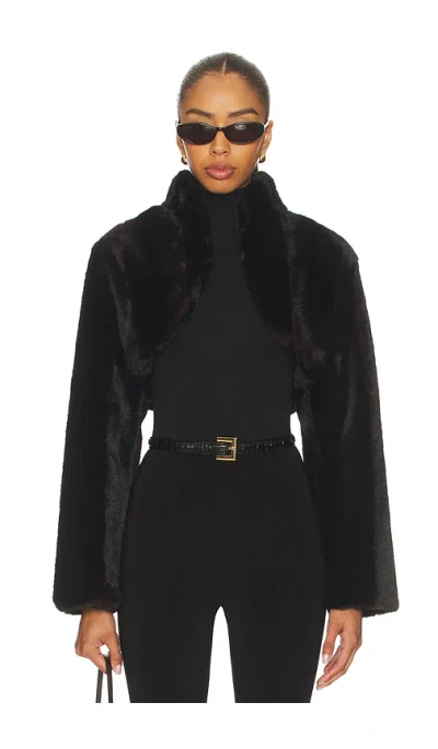 Notch-lapel Zippered Faux Fur Jacket In Black
