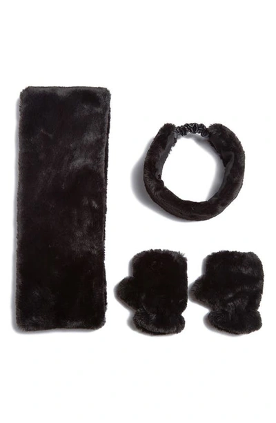 Kids' Abby Faux-fur Scarf Set In Noir