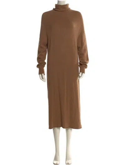 Pre-owned Turtleneck Midi Length Dress In Brown