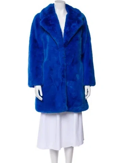 Pre-owned Faux Fur Plaid Print Faux Fur Coat In Blue