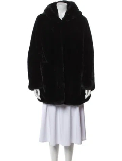 Pre-owned Faux Fur Striped Faux Fur Coat In Black