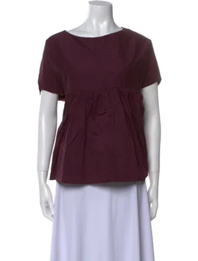 Pre-owned Bateau Neckline Short Sleeve Top In Burgundy