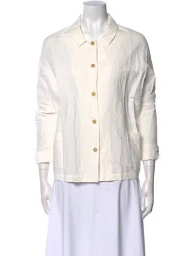 Pre-owned Three-quarter Sleeve Button-up Top In White