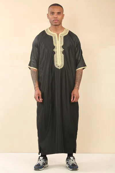 Men's Black Gold Moroccan Thobe Djellaba Jubba Robe Eid