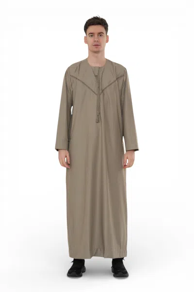 Men's Brown Thobe Emirati Islamic Jubba Robe Eid Tassel Regular Fit In Gold