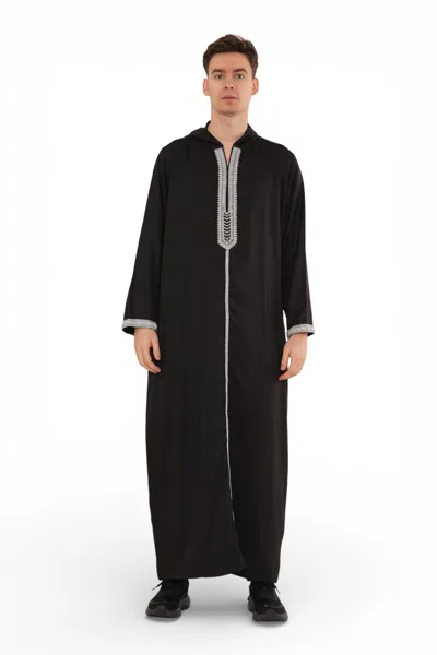 Men's Black Moroccan Thobe Djellaba Jubba Robe Eid