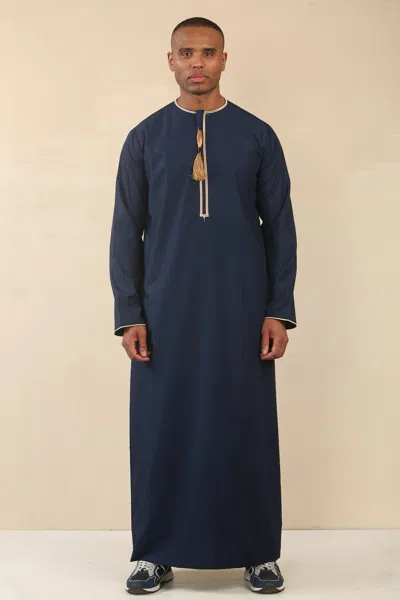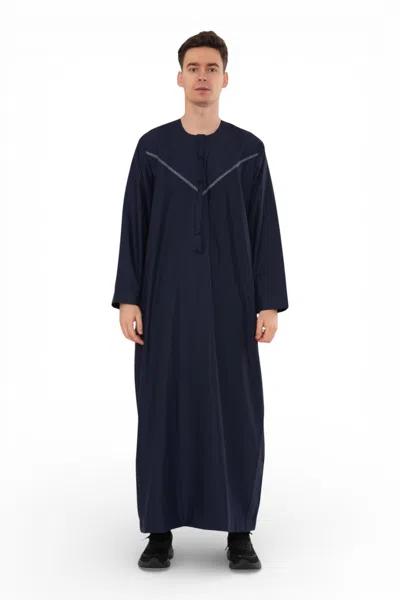 Men's Ramadan Navy Blue Moroccan Jubba Robe Djellaba Eid Thobe - Tt-007