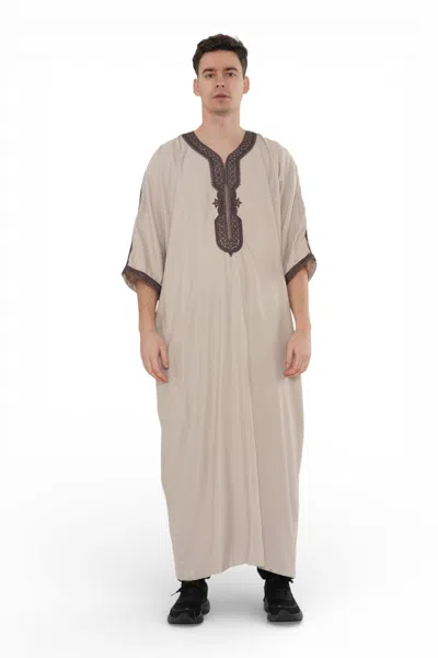 Men's Eid Beige Moroccan Thobe Robe Djellaba Ramadan Eid Jubba- Hm10 In Brown