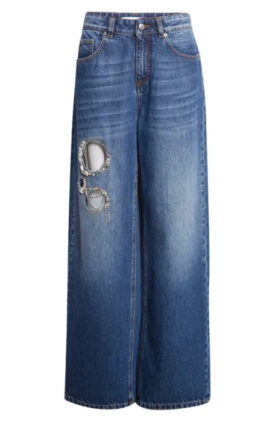 Crystal Chain Cutout Relaxed Jeans In Blue