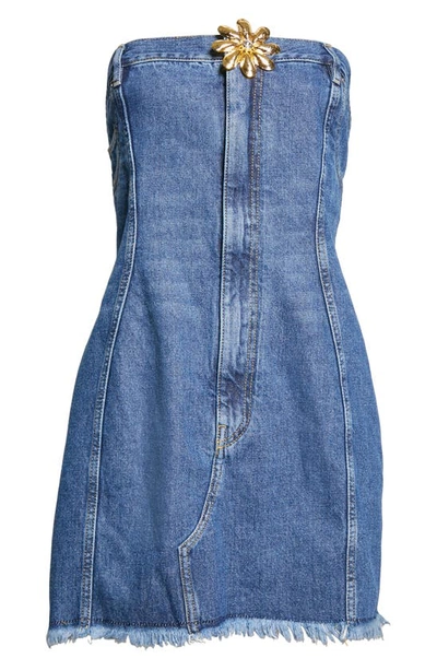 Embellished Cutout Wide-leg Jeans In Light Blue