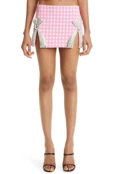 Embellished Twisted Metallic Denim Mini Skirt In Light Blue