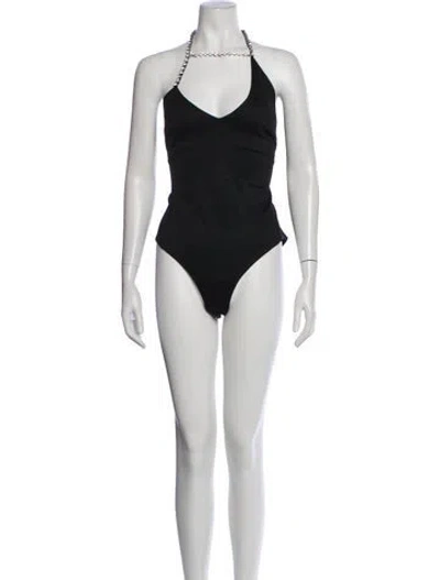 Pre-owned Halterneck Sleeveless Bodysuit In Black