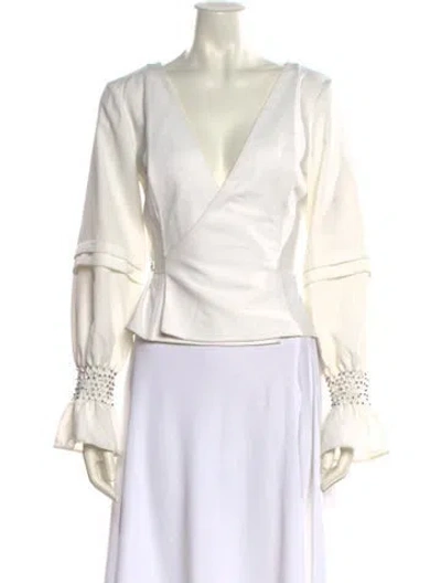 Pre-owned V-neck Long Sleeve Blouse In White