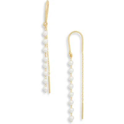Sterling Silver Imitation Pearl Theader Earrings In Gold