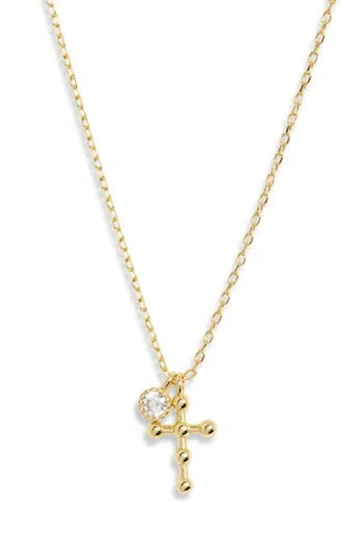 Beaded Cross Cz Pendant Necklace In Gold