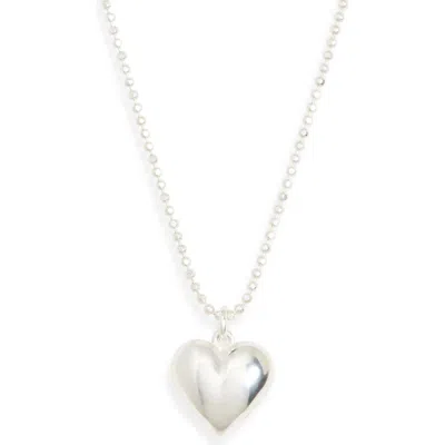 Puffy Heart Pendant Necklace In Silver