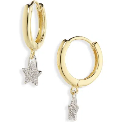Two-tone Cubic Zirconia Star Drop Huggie Hoop Earrings In Gold