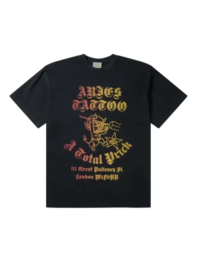 Mesh-panel Graphic Long-sleeve T-shirt In Black