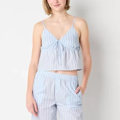 Body Womens Poplin V Neck Sleeveless Juniors Pajama Top In Blue