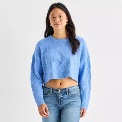 Juniors Womens Crew Neck Long Sleeve Pullover Sweater In Blue