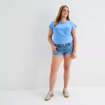 Curvy Womens 2 1/2" Mid Rise Juniors Plus Denim Short In Blue