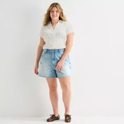 Curvy Womens Mid Rise Juniors Plus 1 Pair Denim Short In Blue