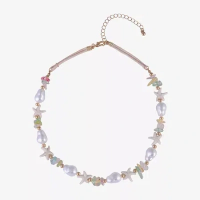 Gold Tone Starfish Womens 16 Inch Beaded Necklace In Silver