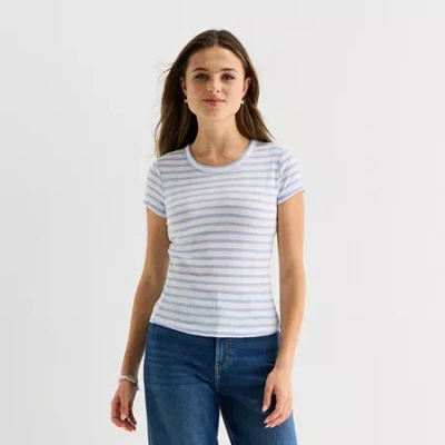 Womens Juniors Crew Neck Short Sleeve T-shirt In Multi