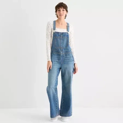 Airy Drape Womens Juniors Low Rise Adaptive Easy-on + Easy-off Baggy Fit Jean In Blue