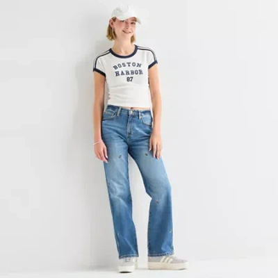 Womens Juniors Low Rise Straight Leg Jean In Blue