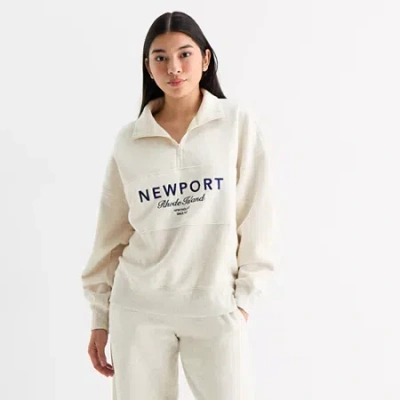Womens Juniors Mock Neck Long Sleeve Quarter-zip Pullover In Gray