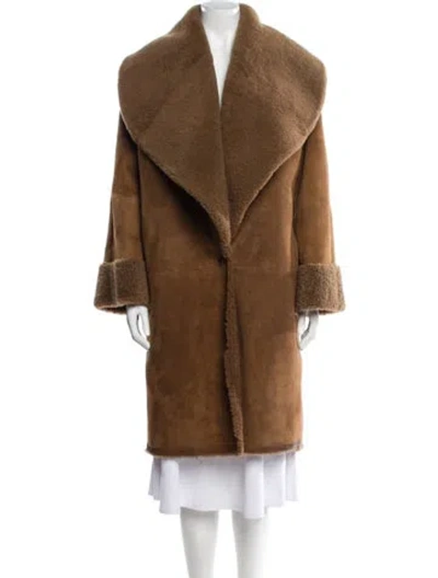 Pre-owned Lambskin Faux Fur Coat In Brown