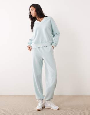 Pure Cotton Adjustable Wide Leg Sweatpants In Blue