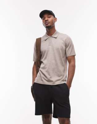 Merino Wool Knit Short Sleeve Polo Shirt In Neutral