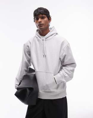 Oversized Heavyweight Hoodie In Light Gray Melange