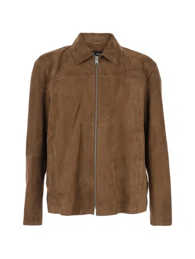 Brown Jacket With Classic Collar And Zip Closure In Suede Man