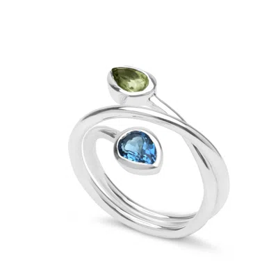 Women's Blue / Green / Silver Blue Topaz And Green Tourmaline Infinity Ring In Multi