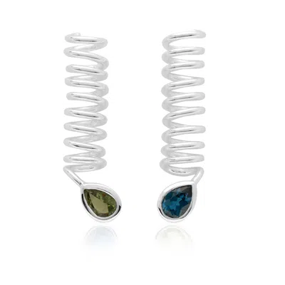 Women's Blue / Green / Silver Blue Topaz & Green Tourmaline Curl Cuff In Multi