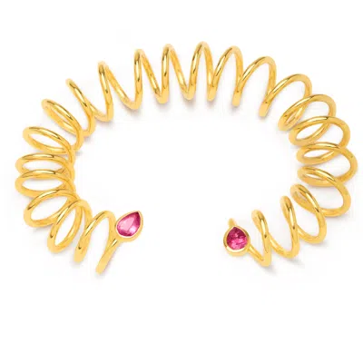 Women's Pink / Purple / Gold Pink Tourmaline Curl Ring In Multi