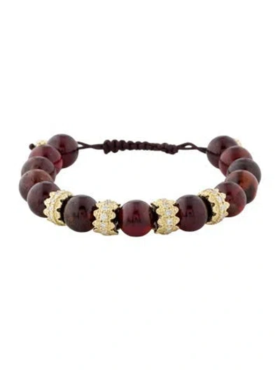 Pre-owned 18k Garnet Bead & Diamond Pull Bracelet In Multi