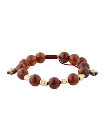 Pre-owned 18k Garnet Bead & Skull Beaded Pull Bracelet In Multi